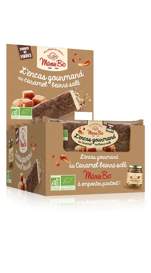 Accueil > Produits > Mamie Bio l'épicerie gourmande > Épicerie sucrée > Les snackings gourmands > L’encas gourmand au caramel beurre salé