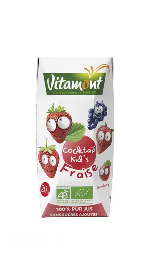 Accueil > Produits > Vitamont le bar à jus > Les mini et maxi formats > 20 centilitres > Cocktail kid’s fraise bio